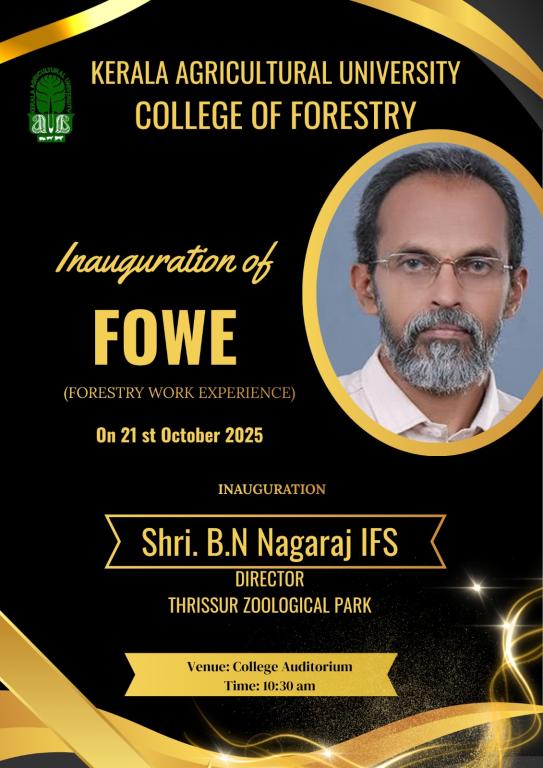 Forestry Work Experience programme of final year B.Sc. Forestry students of College of Forestry was inaugurated by Shri.B.N. Nagaraj, IFS, Director, Thrissur Zoological Park. The event was held on 21st October 2025 at the College Auditorium.